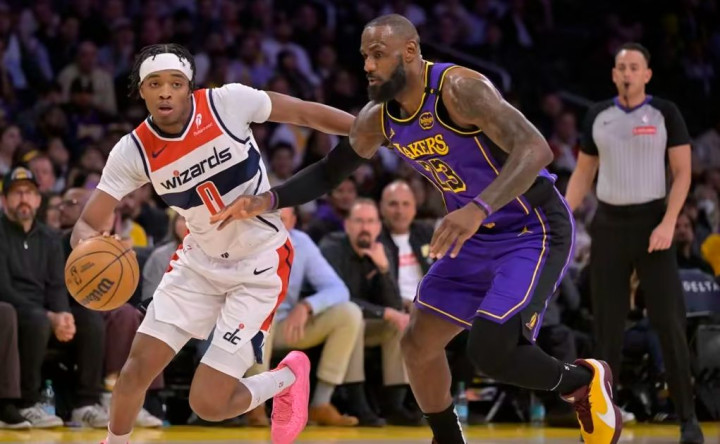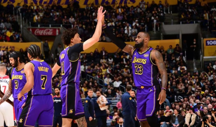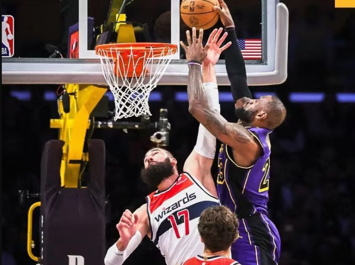 第二节,詹姆斯开始逐渐找回进攻节奏,连续命中三分,并且上演了一记让所有人惊叹的“逆天隔扣”,直接打爆了奇才的防线。瓦兰丘纳斯站在篮下成了“背景板”,而詹姆斯站在场地中央抖肩庆祝,似乎在告诉所有人:“40岁了,我照样能扣飞你们!”这一扣不仅点燃了湖人的士气,也把比赛的胜负天平完全倾向了湖人。半场结束时,湖人已经以59-49领先10分。